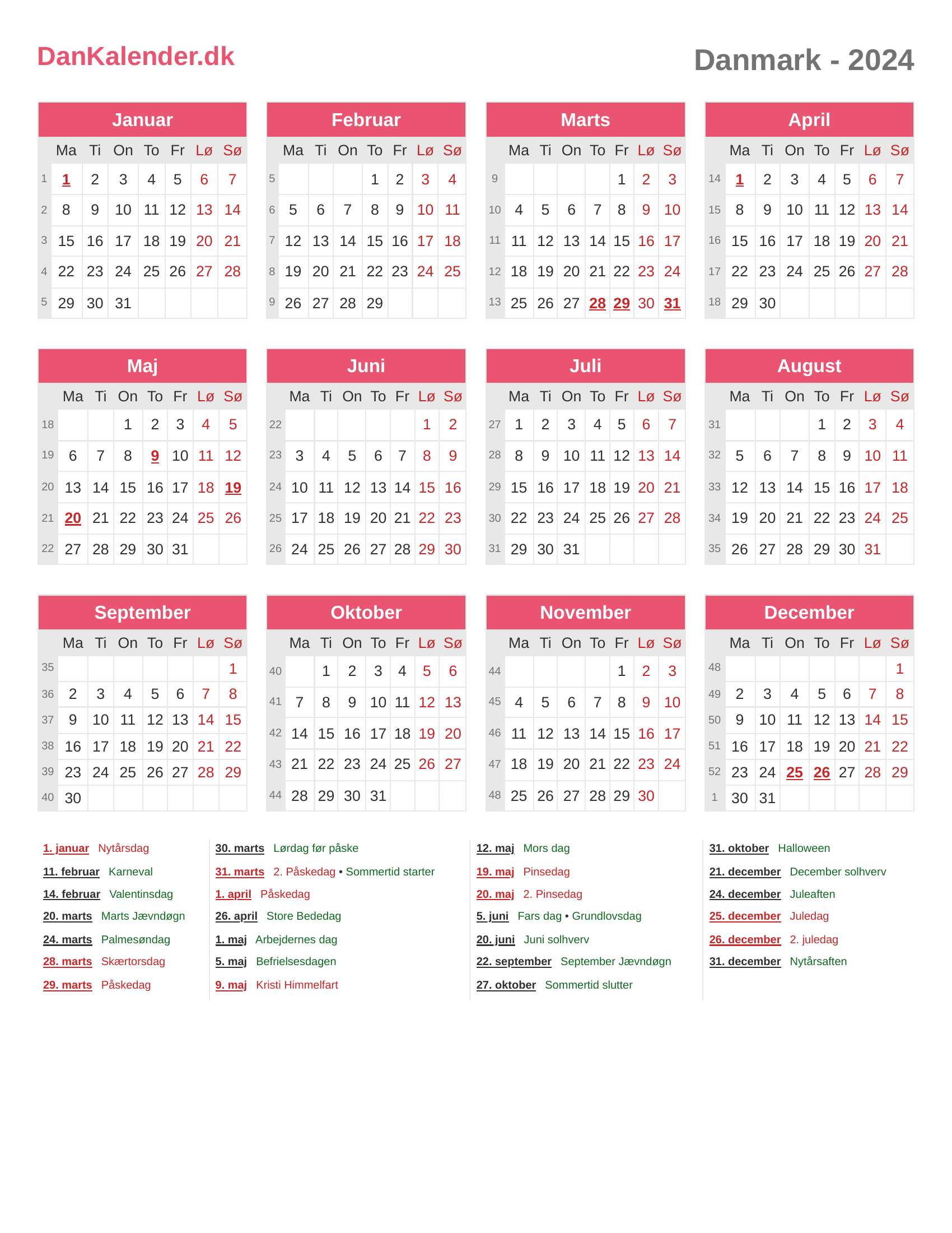 Danmark-kalender 2024