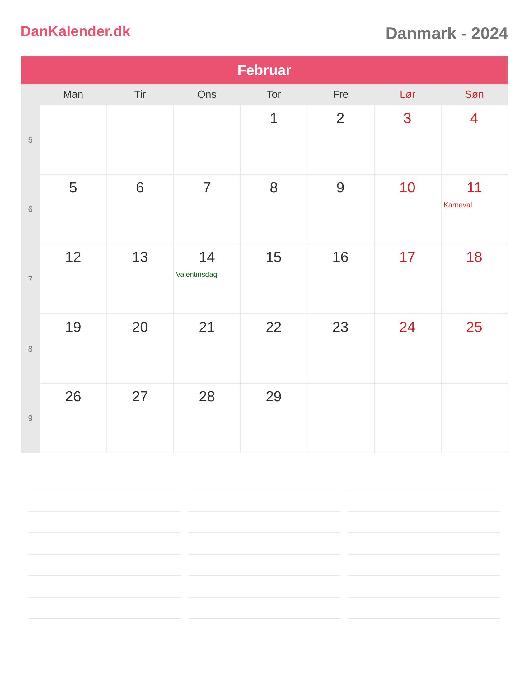 Danmark-kalender 2024 - Februar