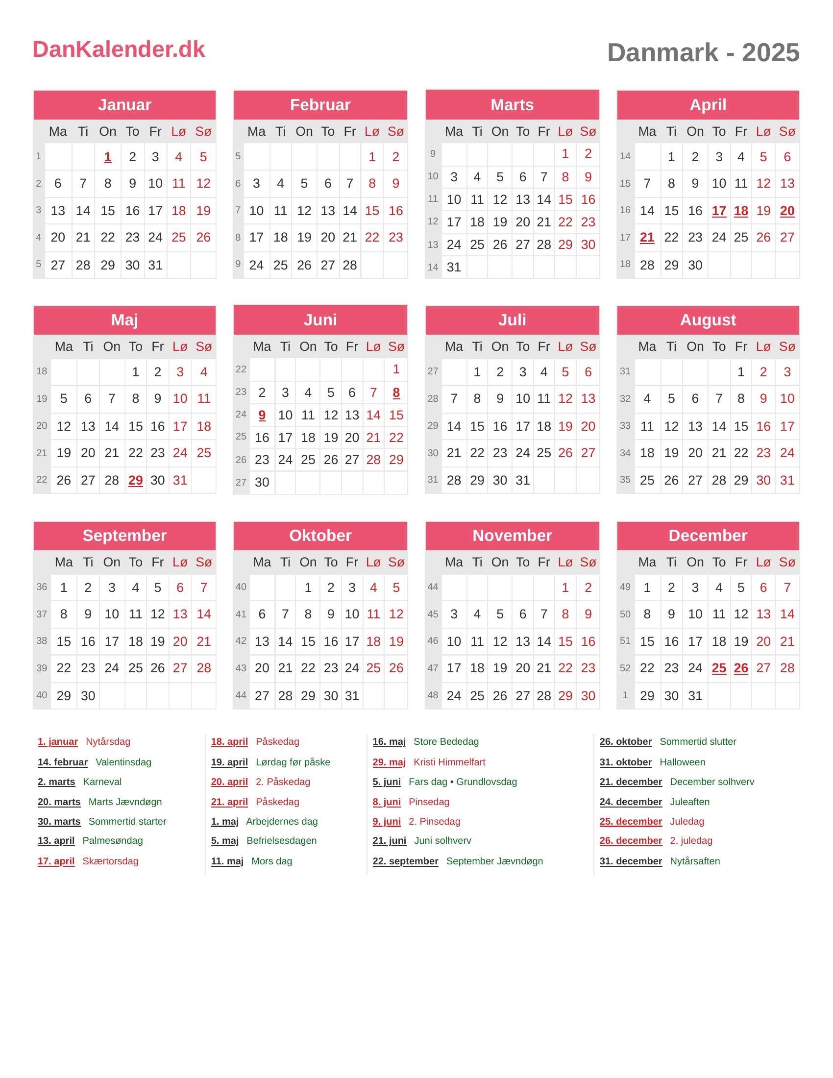 Danmark-kalender 2025