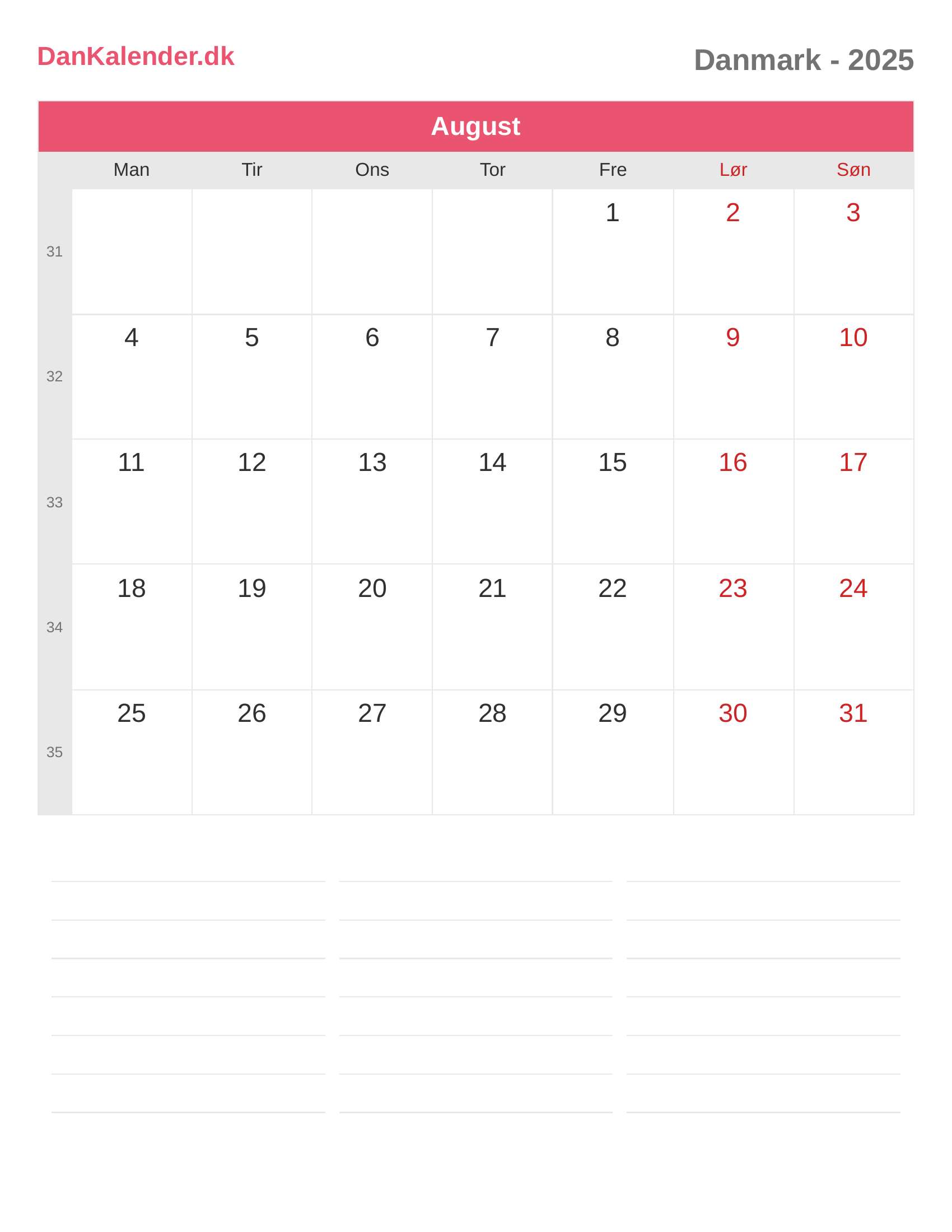 Danmark-kalender 2025 - August