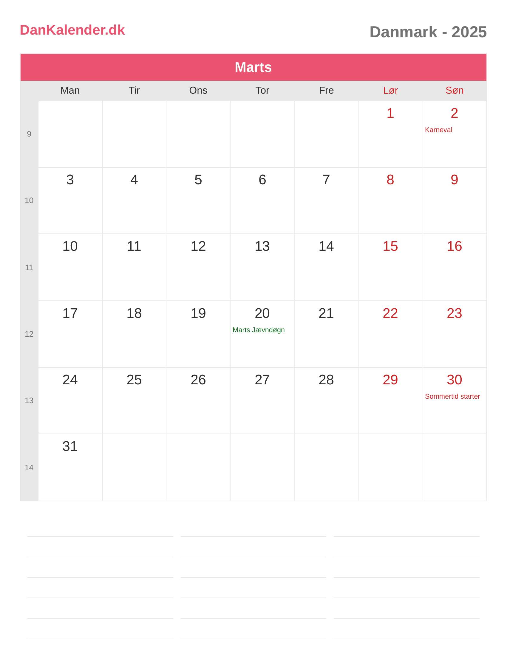 Danmark-kalender 2025 - Marts