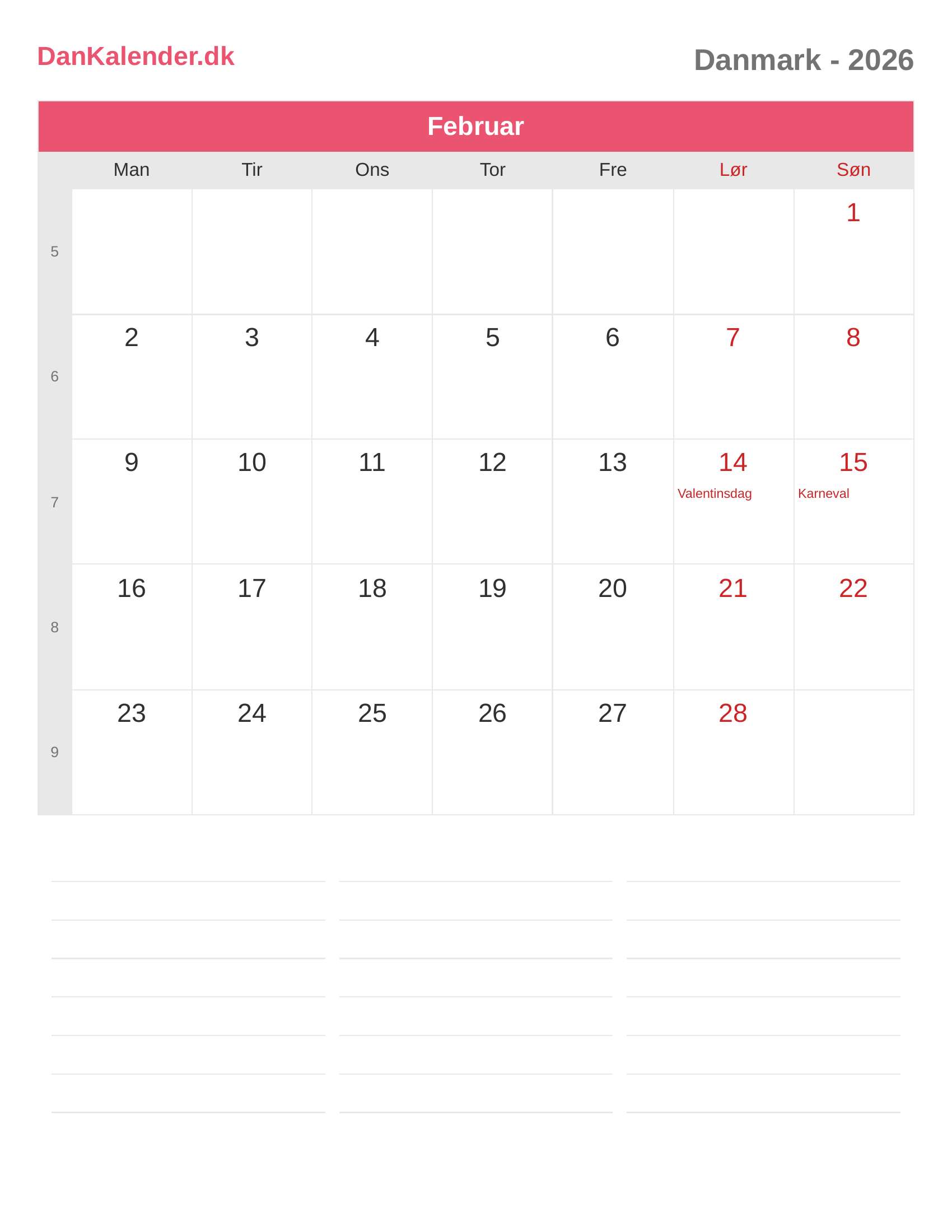 Danmark-kalender 2026 - Februar