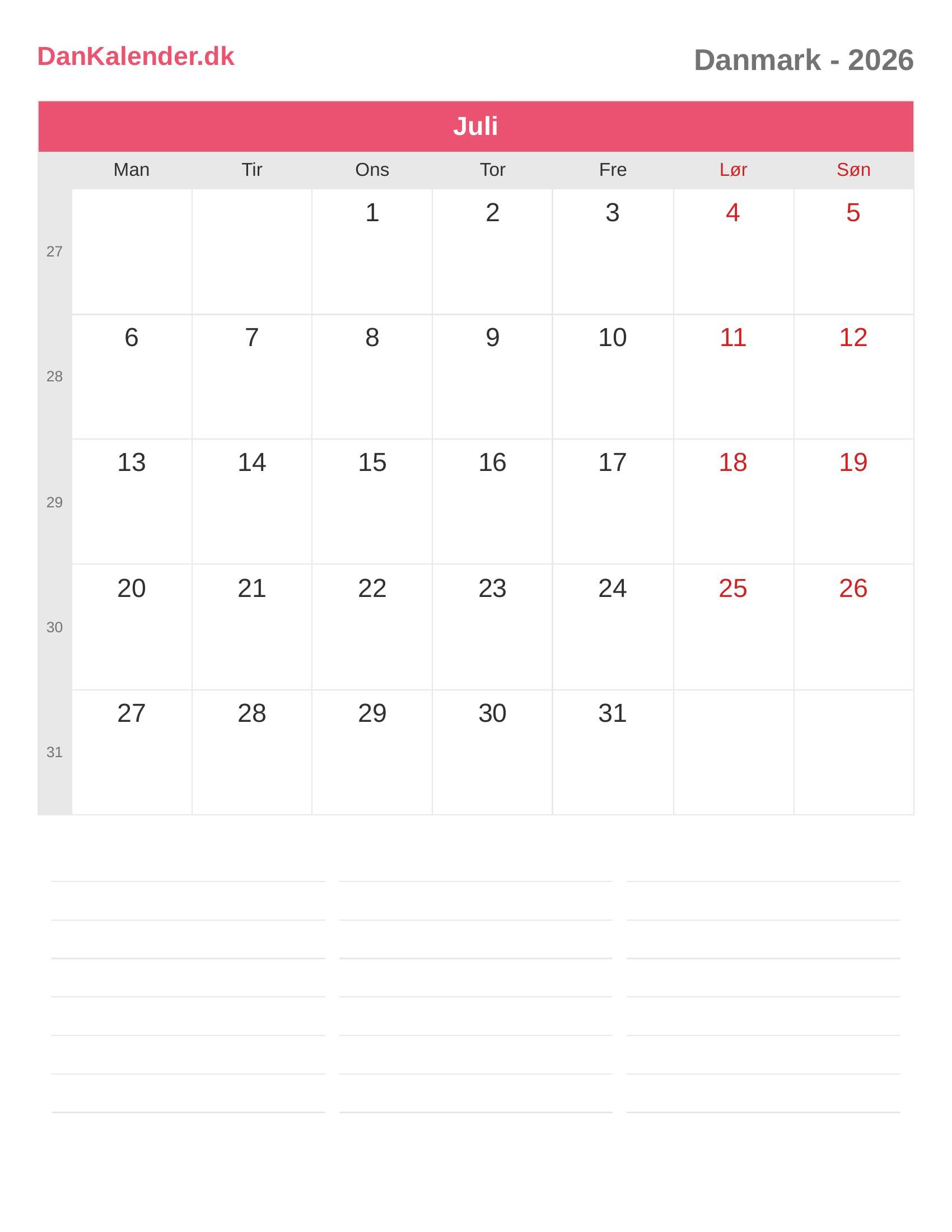 Danmark-kalender 2026 - Juli