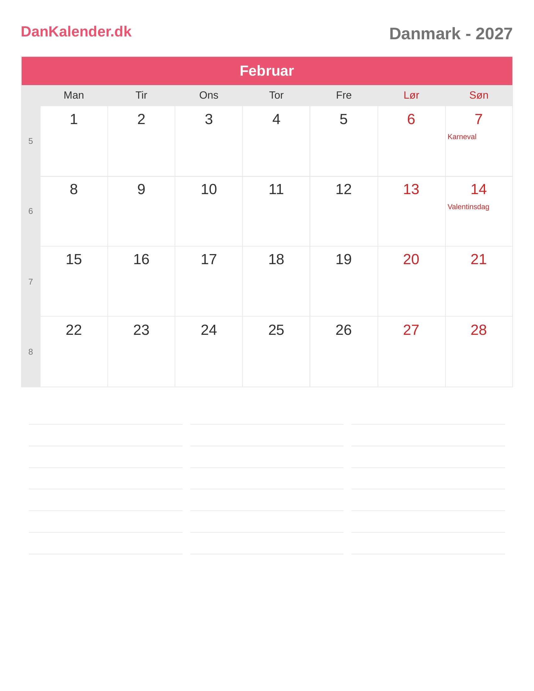 Danmark-kalender 2027 - Februar