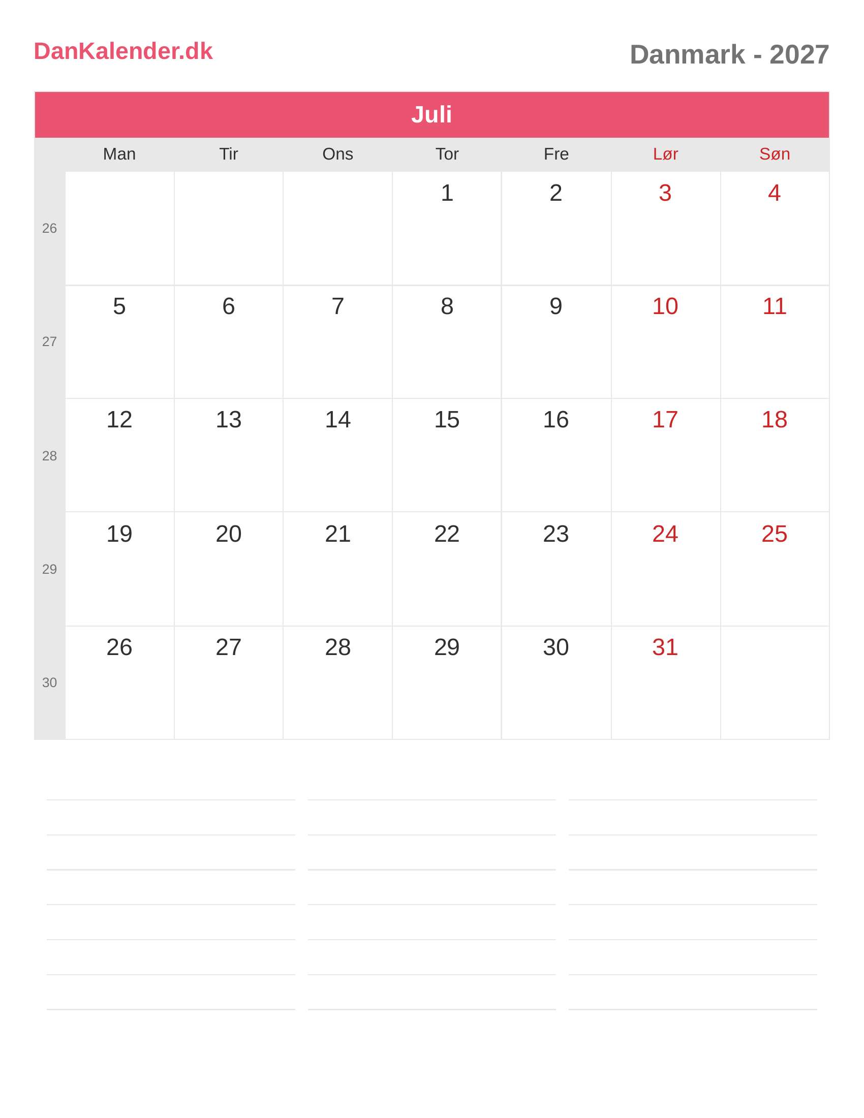 Danmark-kalender 2027 - Juli