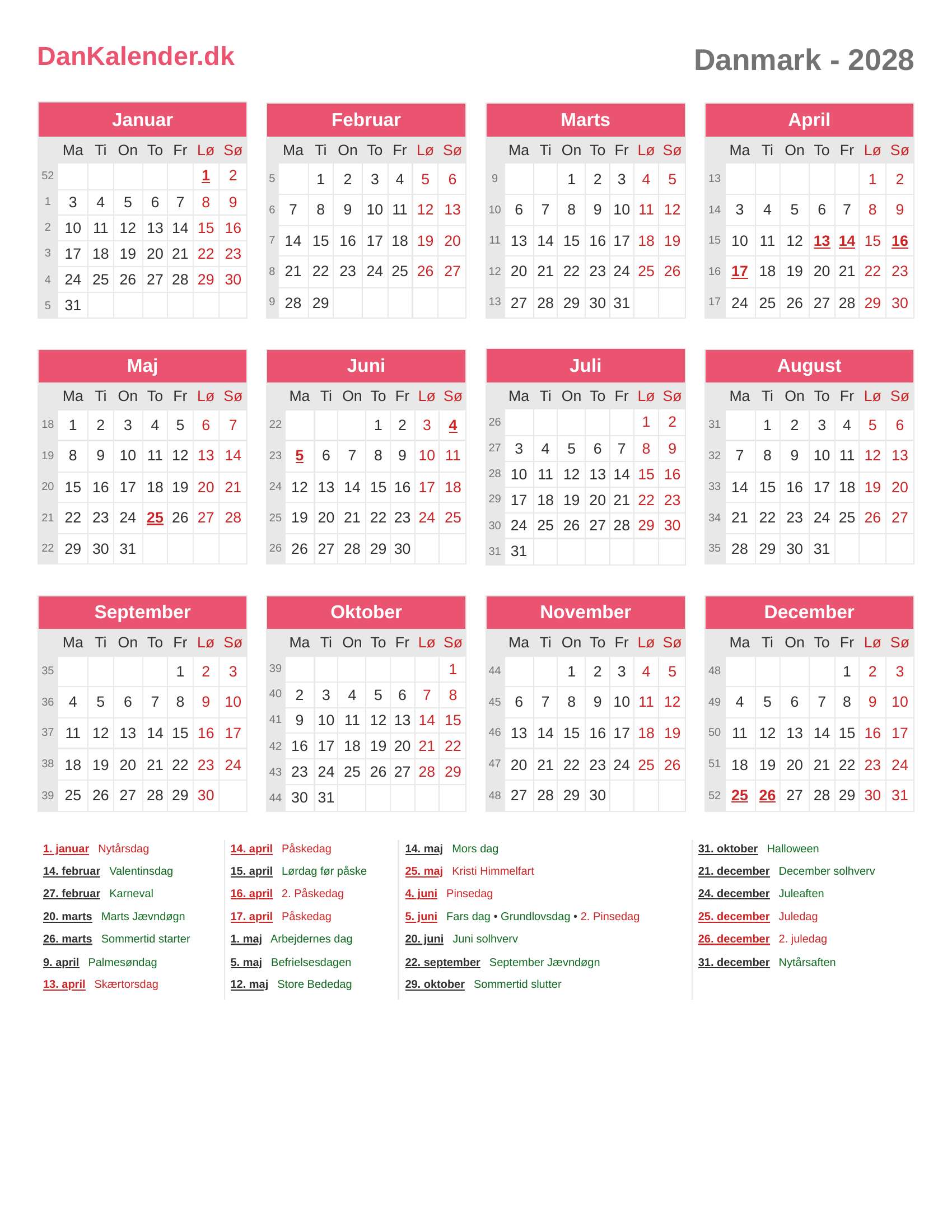 Fars dag • Grundlovsdag • 2. Pinsedag |
