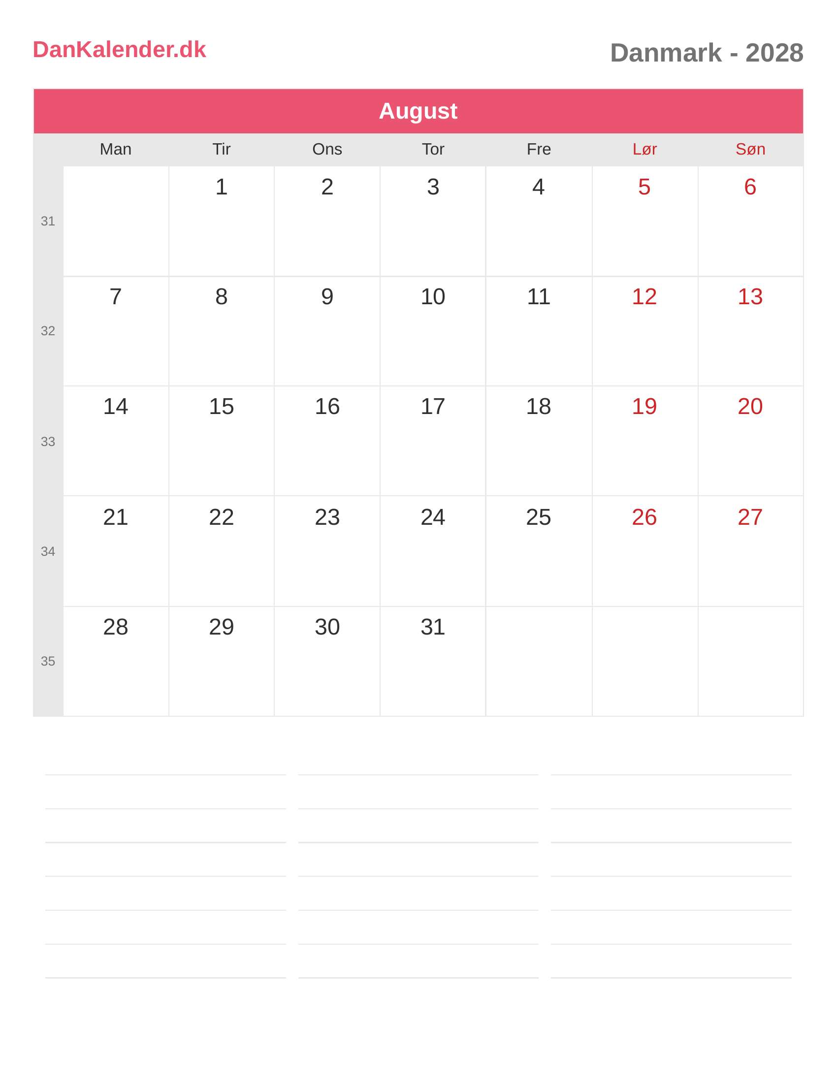 Danmark-kalender 2028 - August