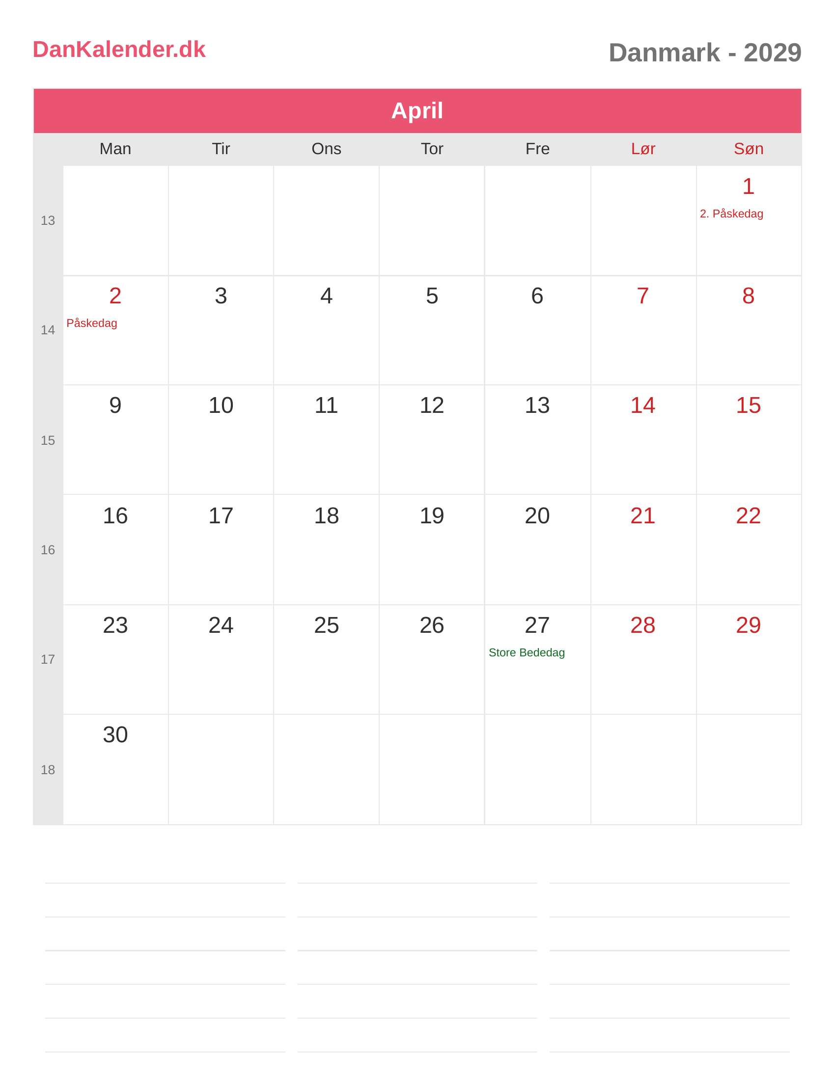 Danmarks helligdage og mærkedage i April 2029