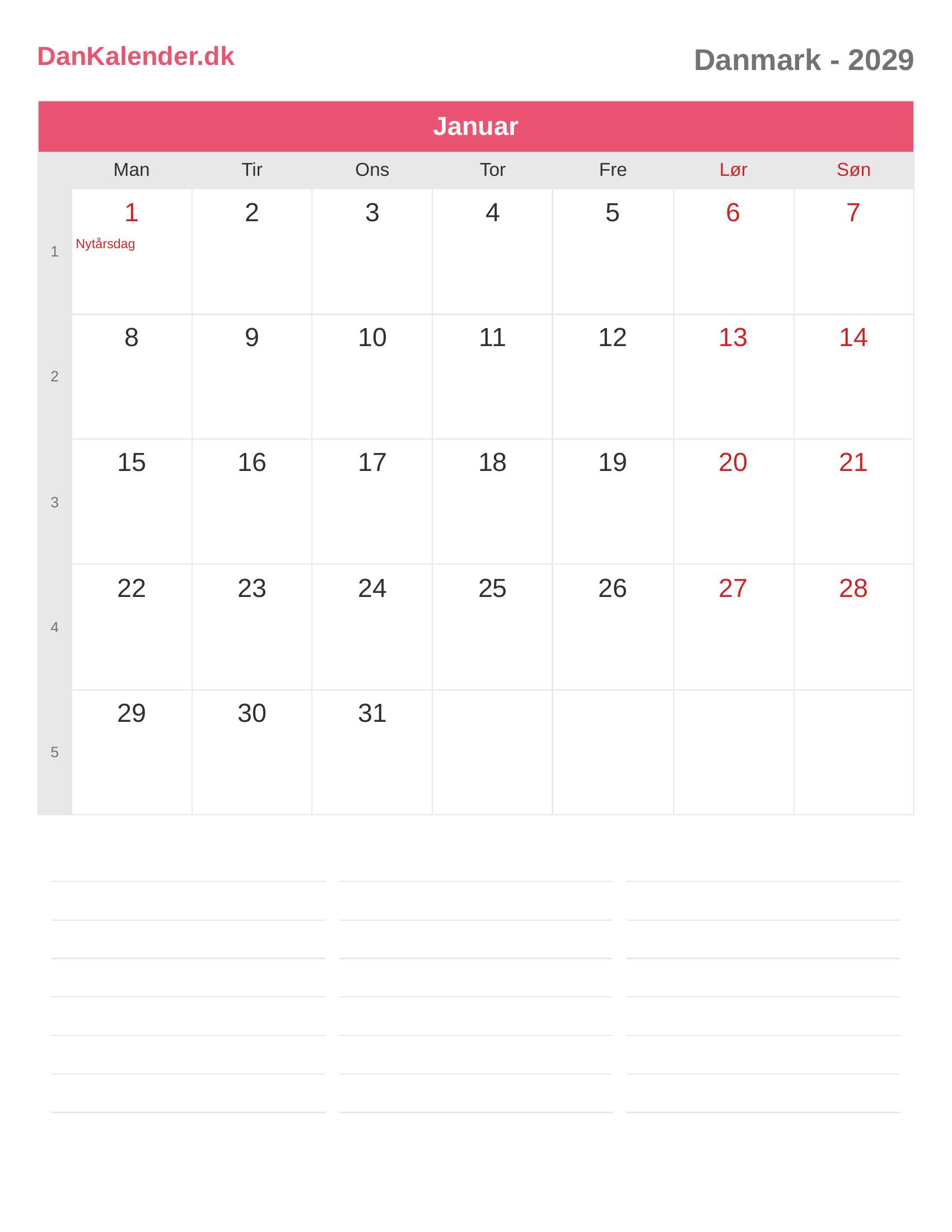 Danmark-kalender 2029 - Januar