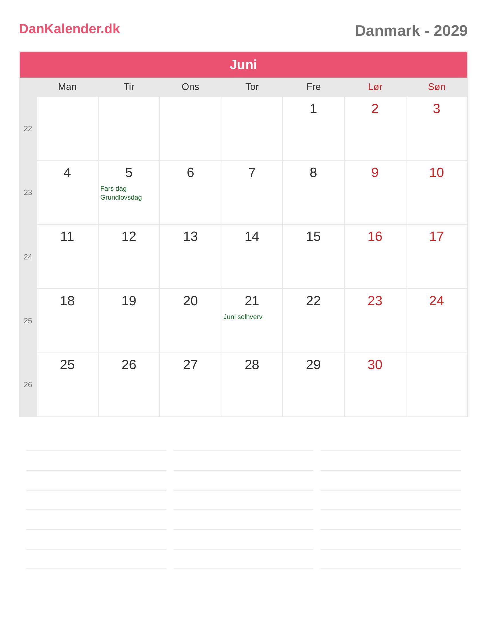 Danmark-kalender 2029 - Juni
